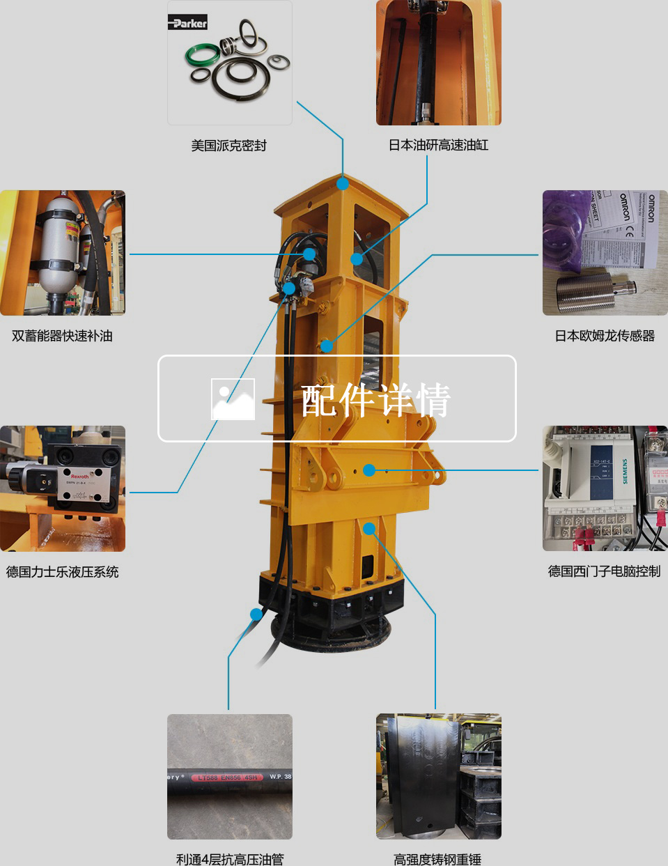 沖擊錘下落時采用電氣和液壓雙重保護(hù),可靠性高。