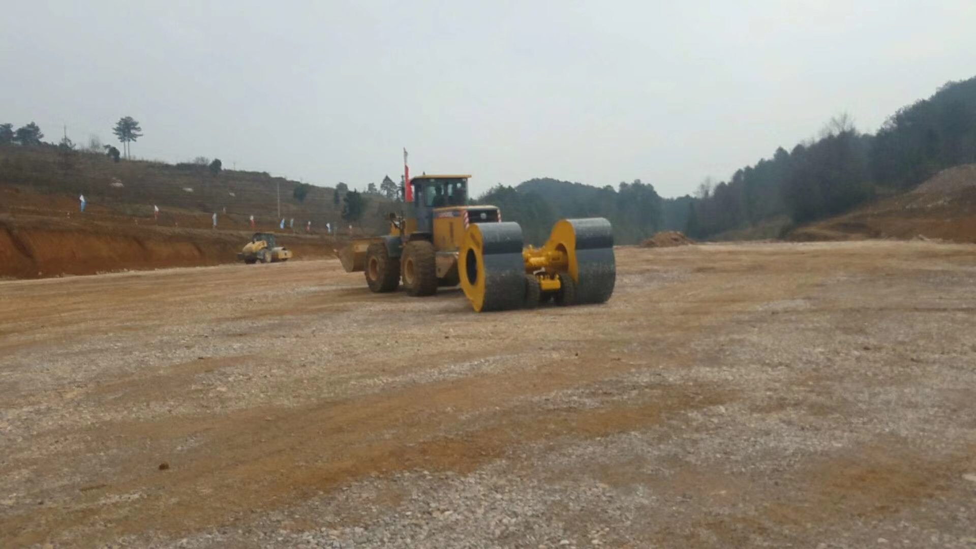 1、煤矸石路基在沖擊壓路機的作用下使顆粒之間相互錯動,并使顆?;ハ嗵钛a達到密實。