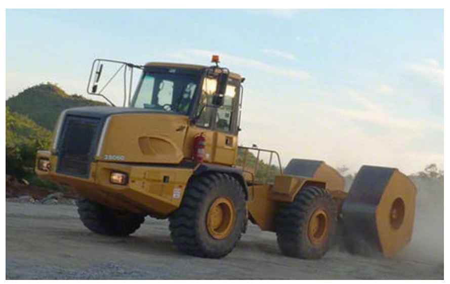沖擊壓實機是一種具有高沖擊能量的壓實機械,其鋼輪成五邊形當(dāng)它行走時,輪軸反復(fù)抬升和落下使鋼輪沖擊水泥板塊,使面板出現(xiàn)橫向裂紋而折斷。隨著沖壓遍數(shù)的增加,鋼輪交錯作用于面板,橫向裂縫變寬并開始出現(xiàn)縱向裂縫。沖擊壓實機對水泥路面施加的強大沖擊力足以使面板破碎和穩(wěn)固, 有效地消除了原來面板脫空而產(chǎn)生的豎向變形。主要用于公里、機場、土石壩等基礎(chǔ)工程的巖土壓實作業(yè),該設(shè)備的突出特點是沖壓影響深度土方路基單層壓實厚度可達0.6~1.5cm,速度快,沖壓速度9~12km/h,效率高是普遍壓實設(shè)備的3~5倍,作用均勻,壓實質(zhì)量高。該設(shè)備用于水泥混合土路面的修復(fù),主要是利用其巨大的沖擊力、破碎、穩(wěn)固混凝土面板,同時沖壓密實原基層和一定深度內(nèi)的路路基。原理:利用多邊形碾壓輪的外接半徑和內(nèi)切半徑的差值,和碾壓輪自重的勢能,再加上碾壓輪行走產(chǎn)生的東北功能,在碾壓路面上施加一定的外力,從而改變碾壓體內(nèi)部的各層面的結(jié)構(gòu),達到加大土體密實度或破碎原路面的效果。
