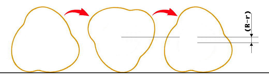 大家知道,沖擊式壓路機(jī)*明顯的特征便是其沖擊碾壓輪不規(guī)則的多邊形外形,這就決定了沖擊壓路機(jī)在沖擊碾壓時(shí),其輪體的著地點(diǎn)類似人跨步走兩腳之間有間隔,不像圓形振動(dòng)壓路機(jī)其輪體的著地點(diǎn)是連續(xù)的。