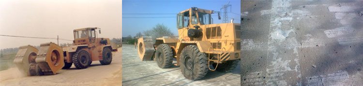 舊砼路面的改建傳統(tǒng)的做法是用重力錘或重力沖擊錘斷裂面板,再用壓路機(jī)穩(wěn)壓,上面鋪筑面層。采用沖擊壓路機(jī)可以將舊砼路面的破碎與壓實兩個過程合二為一,施工速度比傳統(tǒng)方法快得多。