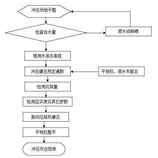2.5 當(dāng)土的含水量較低時,宜于前一天灑水浸潤。施工過程中出現(xiàn)揚(yáng)塵情況時,影響機(jī)械速度和沖壓操作人員視線時,應(yīng)配合刮平機(jī)平整和灑水。