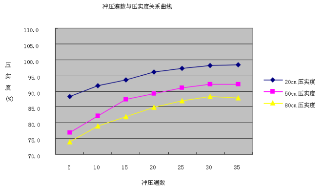 (6)沖壓至規(guī)定的遍數(shù)后進行壓實度和沉降量檢測,壓實度檢測坑應夯填密實再進行下一步?jīng)_壓。