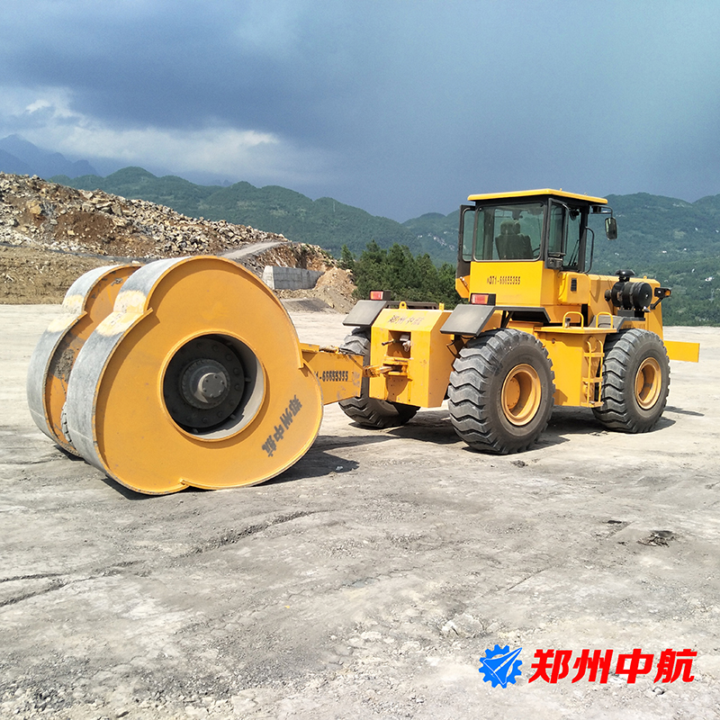 沖擊式壓路機(jī)是一種新式路基壓實(shí)機(jī)械。沖擊式壓路機(jī)通過(guò)牽引車牽引,帶動(dòng)兩個(gè)沖擊輪,利用沖擊輪自身重量在前進(jìn)時(shí)向下的沖擊力,對(duì)路基進(jìn)行壓實(shí),或?qū)λ嗦访孢M(jìn)行破碎。具有減少路基施工后沉降、提高路基整體強(qiáng)度以及加固軟弱地基的作用。